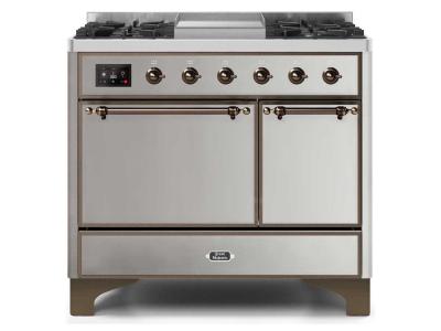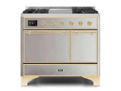 40" ILVE Majestic II Dual Fuel Natural Gas Freestanding Range With Bronze Trim In Stainless Steel -