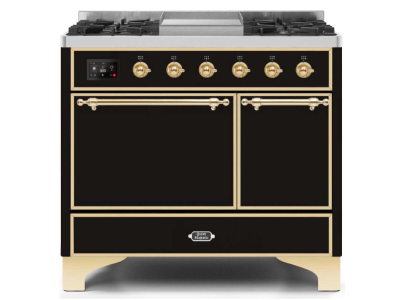 40" ILVE Majestic II Dual Fuel Liquid Propane Range with Brass Trim in Glossy Black - UMD10FDQNS3/BK