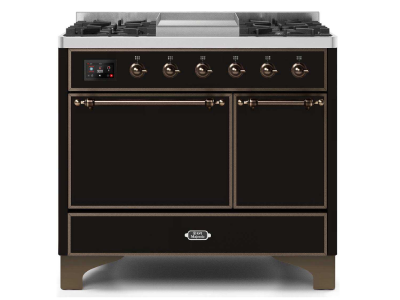 40" ILVE 3.82 Cu. Ft. Majestic II Dual Fuel Liquid Propane Range in Glossy Black with Bronze Trim -