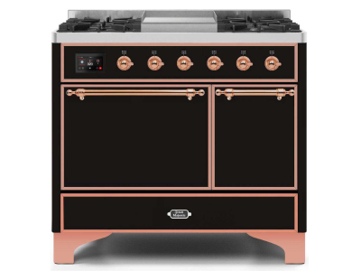 40" ILVE Majestic II Dual Fuel Liquid Propane Range with Copper Trim in Glossy Black - UMD10FDQNS3/B