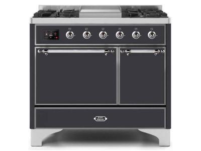 40" ILVE Majestic II Dual Fuel Freestanding Range with Chrome Trim in Matte Graphite - UMD10FDQNS3/M