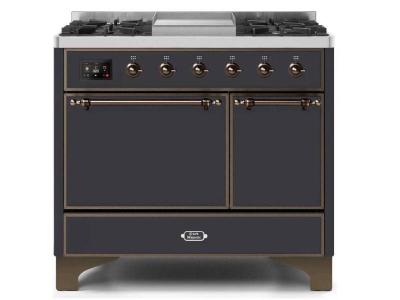 40" ILVE 3.82 Cu. Ft. Majestic II Dual Fuel Liquid Propane Range in Matte Graphite with Bronze Trim