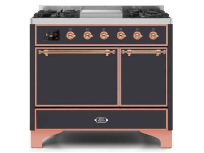 40" ILVE Majestic II Dual Fuel Liquid Propane Range with Copper Trim in Matte Graphite - UMD10FDQNS3