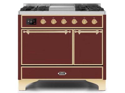 40" ILVE Majestic II Dual Fuel Liquid Propane Range with Brass Trim in Burgundy - UMD10FDQNS3/BUG LP