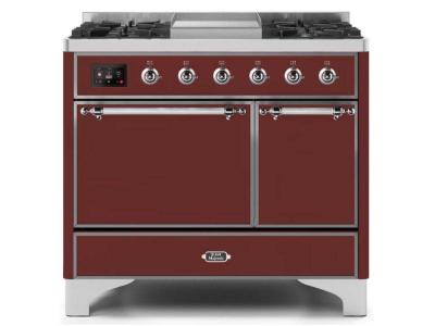 40" ILVE Majestic II Dual Fuel Freestanding Range with Chrome Trim in Burgundy - UMD10FDQNS3/BUC LP