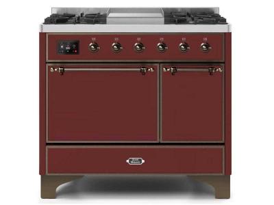 40" ILVE 3.82 Cu. Ft. Majestic II Dual Fuel Liquid Propane Range in Burgundy with Bronze Trim - UMD1