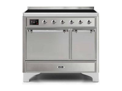 40" ILVE Majestic II Electric Freestanding Range with Chrome Trim in Stainless Steel - UMDI10QNS3/S
