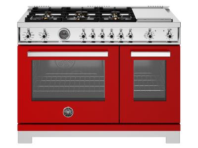 48" Bertazzoni Professional Series Dual Fuel Range with 6 Brass Burners in Rosso - PRO486BTFEPROT