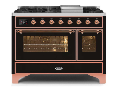 48" ILVE Majestic II Dual Fuel Range with Copper Trim in Glossy Black - UM12FDNS3BKP-LP