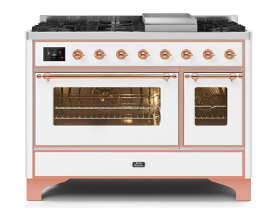 48" ILVE Majestic II Dual Fuel Range with Chrome Trim in White - UM12FDNS3WHP-LP