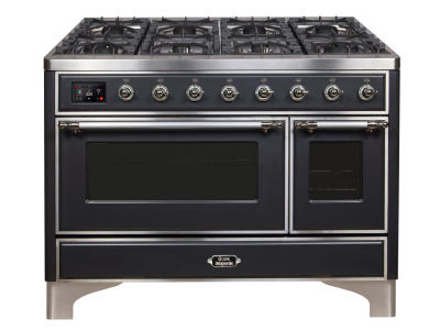 48" ILVE Majestic II Dual Fuel Range in Matte Graphite with Chrome Trim - UM12FDNS3MGC-NG
