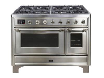 48" ILVE Majestic II Dual Fuel Natural Gas Freestanding Range with Chrome Trim in Stainless Steel -