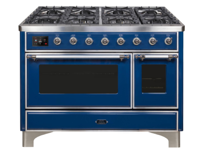 48" ILVE Majestic II Dual Fuel Range with Chrome Trim in Blue - UM12FDNS3MBC-LP