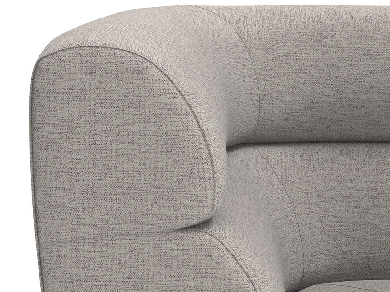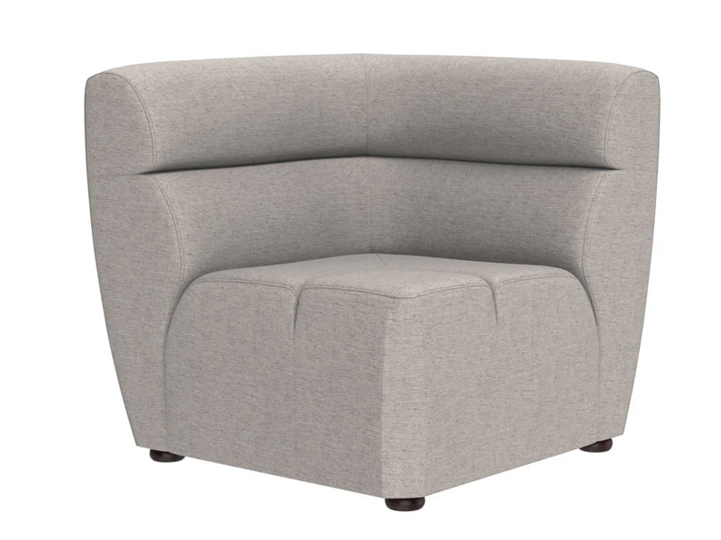 This modular corner chair allows for modern creativity. This piece can be sourced alone or in a variety of combinations with the coordinating Cornell armless chair and ottoman sectional pieces. A stylish and comfortable addition to large and small living, lounge, and lobby spaces. Stocked in polo club stone performance fabric. Performance fabric is moisture repellent, durable and easy to clean.