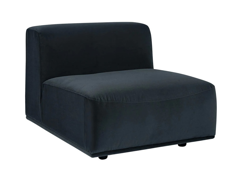 A modern armless chair was designed to allow for creativity. Available in smokescreen fabric. This piece can be sourced in a variety of combinations with the coordinating Darren corner chair, left arm and right arm chair pieces. A stylish and comfortable addition to large and small living spaces. Also available as a sectional set. Smokescreen fabric has a dark green undertone.