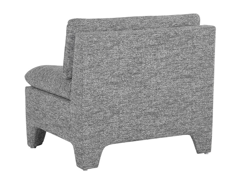 Designed to strike intrigue, this contemporary lounge chair features an eye-catching shape that will command attention. Stocked in boho sesame and oatmeal fabrics, and completed with fully upholstered legs.