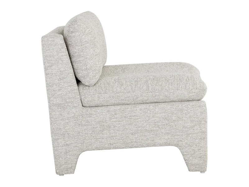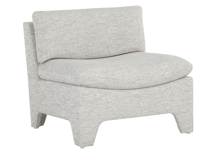 Designed to strike intrigue, this contemporary lounge chair features an eye-catching shape that will command attention. Stocked in boho oatmeal and sesame fabrics, and completed with fully upholstered legs.
