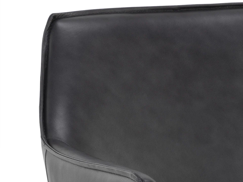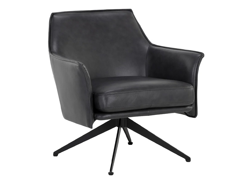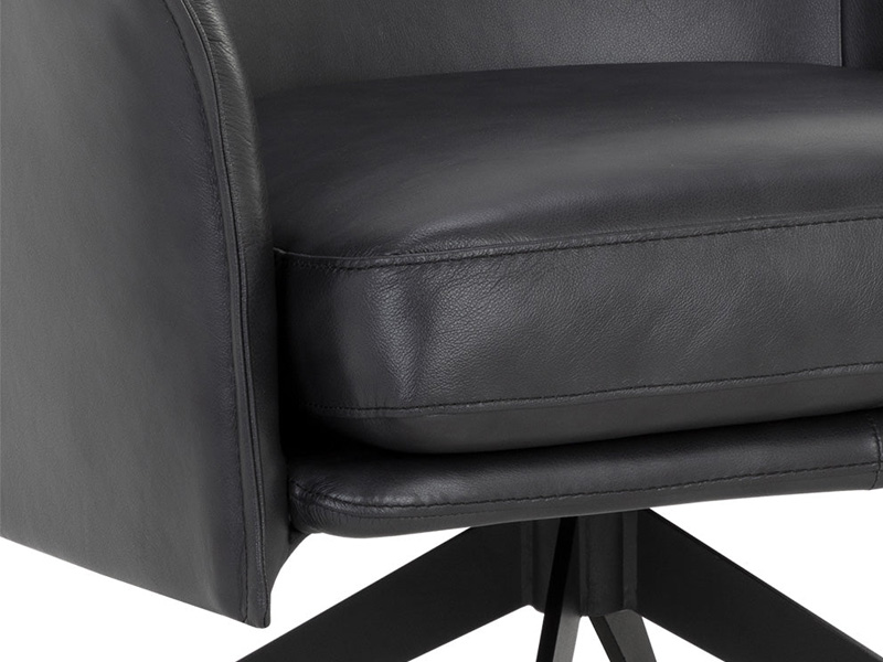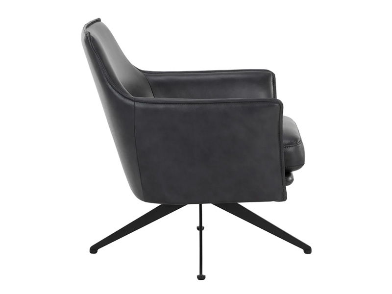 Embrace the comforting contours of the Crosby Swivel Lounge Chair. Perfect for any open living space, this lounge chair features sloped arms and a minimal silhouette upholstered in luxuriously smooth alpine black leather. Black powder-coated steel legs lend a stylish flair to the sleek design. Handle with Care: This design has been crafted with 100% leather. Leather is a natural material; as such, colour variations, markings, wrinkles, grooves and light scratches are acceptable and appreciated characteristics. No two pieces are alike.