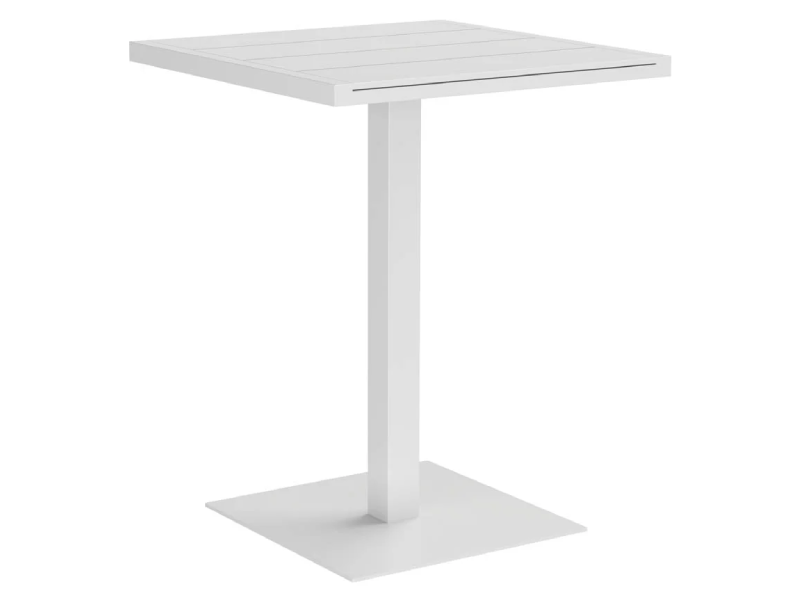 The Merano Bar Table is a modern take on classic design. Sleek lines define its striking silhouette. Constructed from black powder-coated aluminium with a slatted table top. Suitable for indoor and covered outdoor spaces.