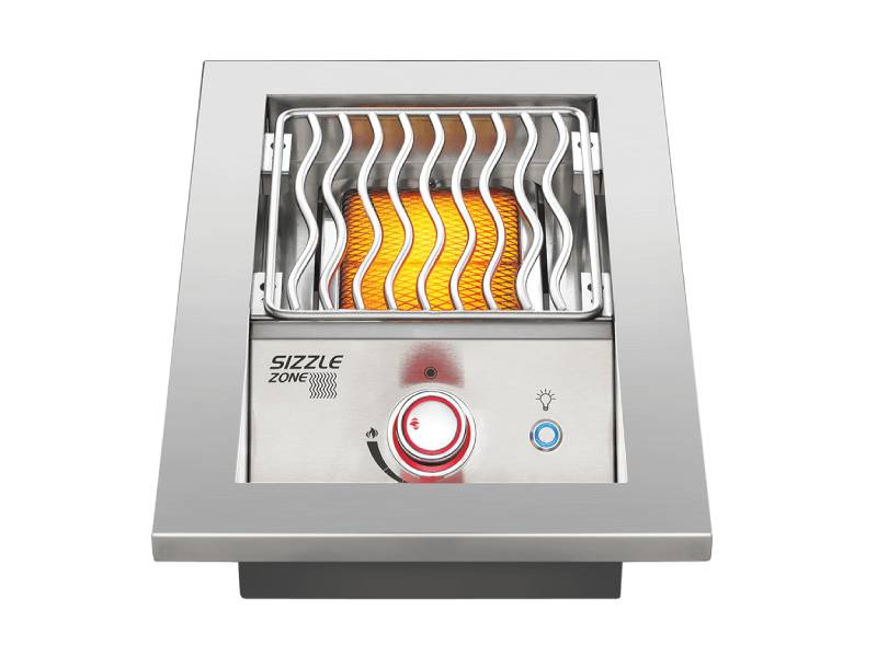 The Infrared SIZZLE ZONE™ can be used to produce the perfect sear on meat or used to create sides and sauces while the main grill is in use. This 10-inch drop-in Infrared SIZZLE ZONE™ burner sears succulent steaks to restaurant-quality perfection. Made from the same quality of marine-grade stainless steel as the 700 Series built-in grills, this drop-in side burner matches your custom outdoor kitchen. These burners provide stylish longevity and were built with ease of install in mind. Virtually maintenance-free 7.5-mm cooking grids deliver the iconic WAVE™ sear marks that tell your meal was cooked on a Napoleon. Ignite the burners one-handed using the JETFIRE™ instant ignition system. The ergonomic NIGHTLIGHT™ control knobs which provide ambiance and safety, glowing a glorious blue and changing to red when burners are in use.