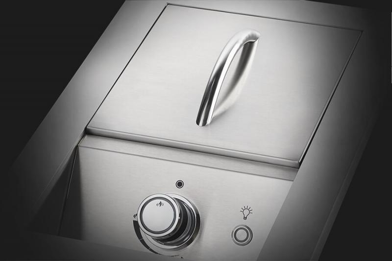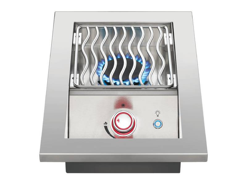 Create sides and sauces while the main grill is in use with this 10-inch, drop-in, Range Burner. Instantly ignite these burners single-handed with the JETFIRE™ Ignition System. The large, ergonomic NIGHTLIGHT™ Control Knobs provide ambiance and safety, glowing a glorious blue that changes to red when the burners are in use. Made from the same quality of marine-grade stainless steel as the 700 Series built-in grills, this drop-in side burner matches your custom outdoor kitchen. These burners provide stylish longevity and were built for ease of install.