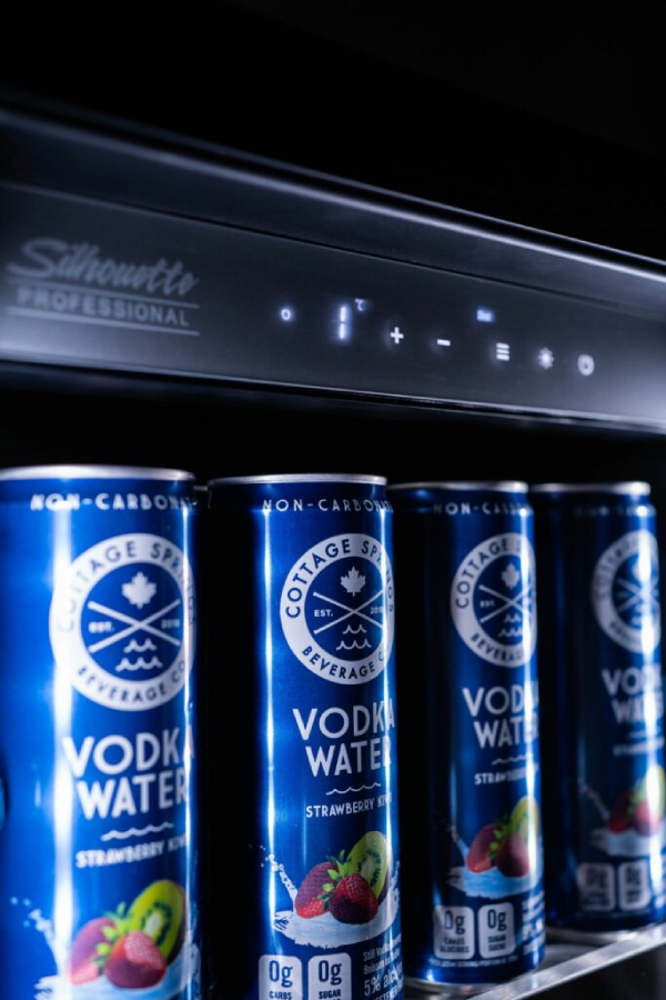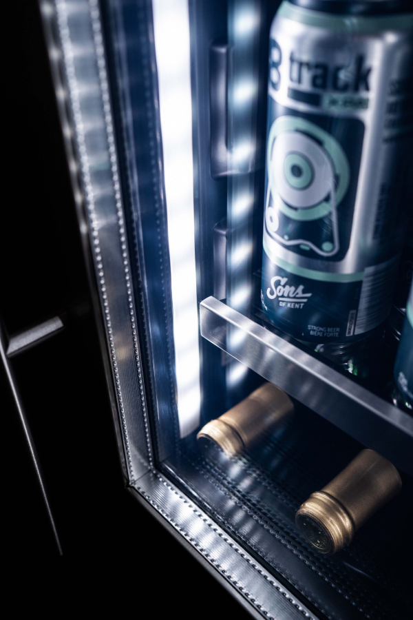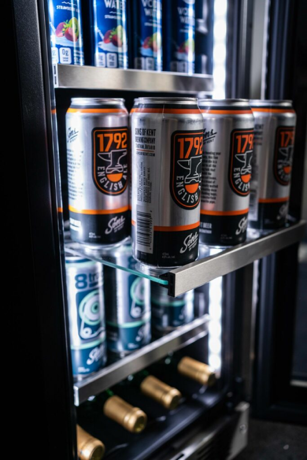 - Built-in beverage center stores up to 7 bottles of wine and up to 66 – 355 mL cans
