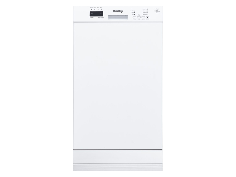 Leave the dirty dishes up to Danby’s 18” ENERGY STAR® compliant dishwasher, perfect for small space living. This built-in white dishwasher holds ten place settings and one silverware basket. It has four wash cycles to choose from: regular, auto, intensive, and quick, plus sanitize mode. The dishwasher is designed to operate at 51 decibels, which creates less noise and disturbance than the volume of a normal conversation. The delay start feature lets you pre-select the desired start time, so your dishes get washed on your schedule.