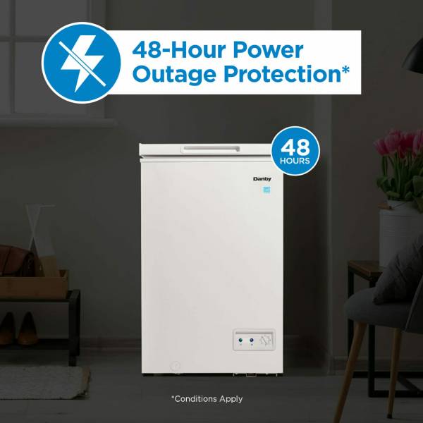 The Danby 48 hour Power Outage Protection helps your frozen food stay frozen under certain conditions. These are the ideal conditions for the best results.