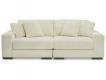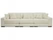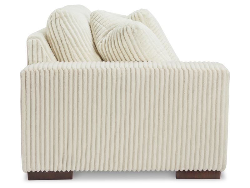 A High-end trending look, stunning soft wide cord fabric. All sides are finish with accent low profile legs. Loose reversible seat cushions and backs. Feather blend toss pillows.