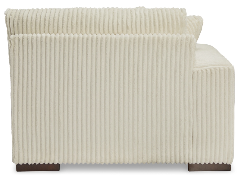 This left-arm facing corner chair is made with polyester upholstery. Pairs with other items in the series to make a sectional.