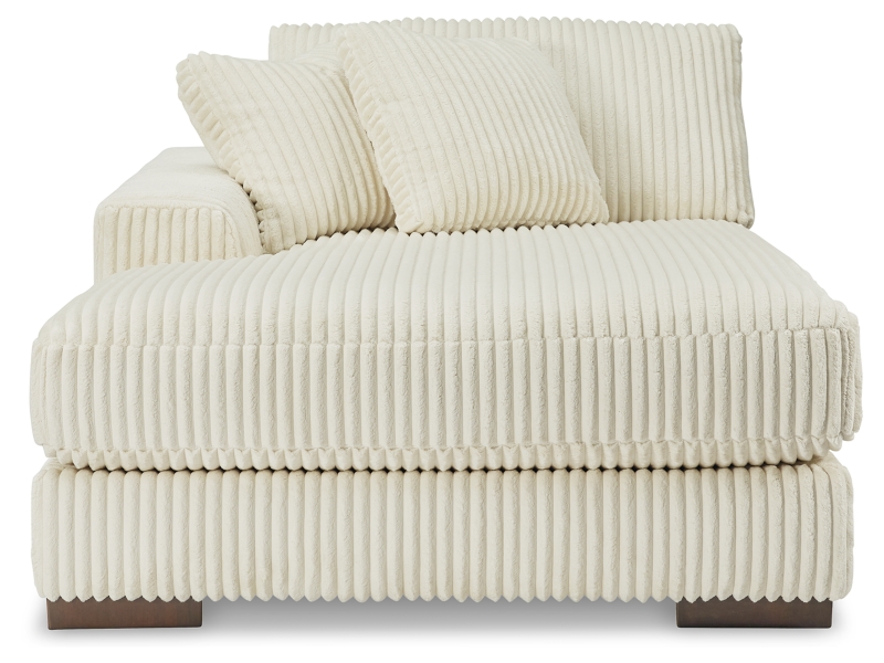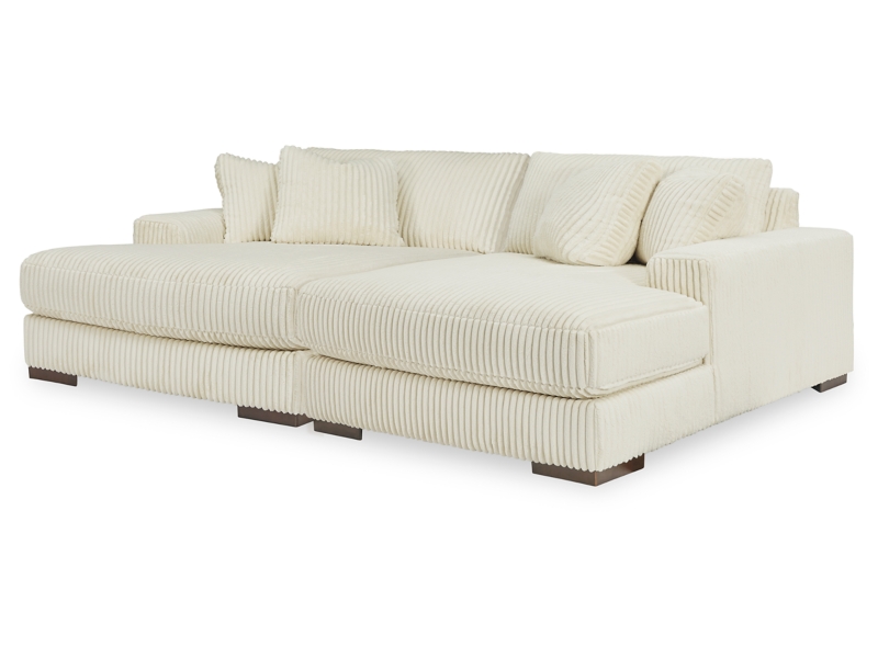 Plush and posh. Showcase your eye for on-trend texture with the statement-making cord upholstery of this double-chaise sectional. Its stunningly soft fabric entices in an ivory hue, complementing contemporary color palettes. Sink into the cushions and plan to stay a while—this cozy living room centerpiece highlights your high-end approach to comfort and style.