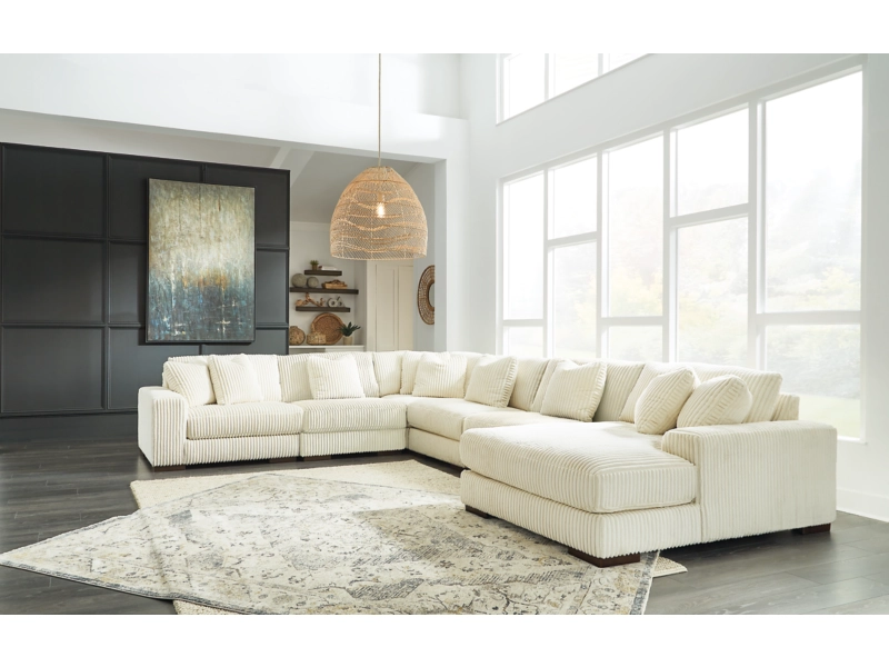 Plush and posh. Showcase your eye for on-trend texture with the statement-making cord upholstery of this sectional with chaise. Its stunningly soft fabric entices in an ivory hue, complementing contemporary color palettes. Sink into the cushions and plan to stay a while—this cozy living room centerpiece highlights your high-end approach to comfort and style.