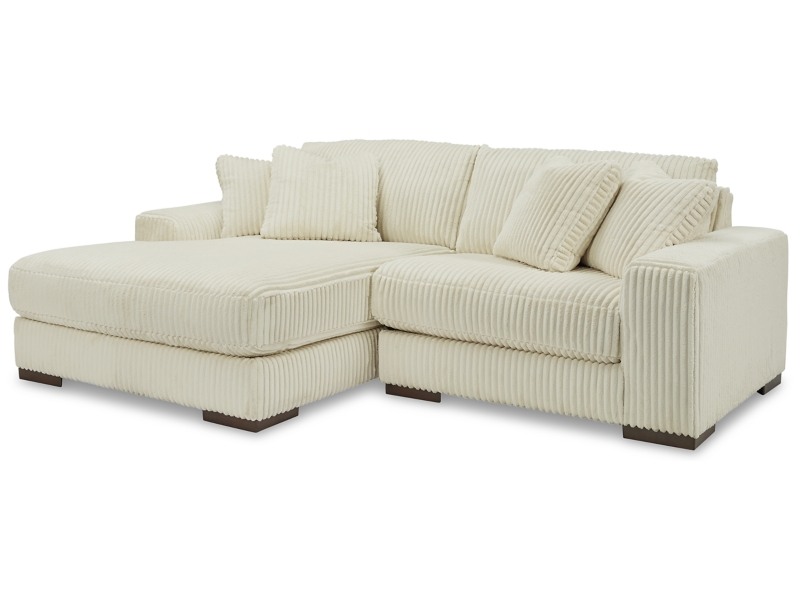 Plush and posh. Showcase your eye for on-trend texture with the statement-making cord upholstery of this sectional with chaise. Its stunningly soft fabric entices in an ivory hue, complementing contemporary color palettes. Sink into the cushions and plan to stay a while—this cozy living room centerpiece highlights your high-end approach to comfort and style.