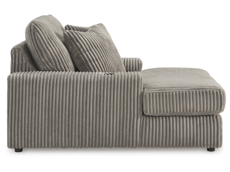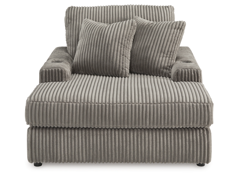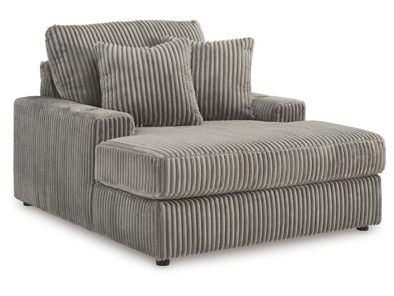 Plush and posh. Showcase your eye for on-trend texture with the statement-making cord upholstery of this chaise. Its stunningly soft fabric entices in a warm neutral hue, complementing contemporary color palettes. Sink into the cushions and plan to stay a while—this cozy oversized chaise highlights your high-end approach to comfort and style.
