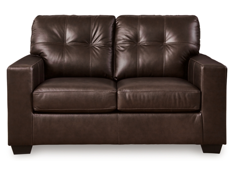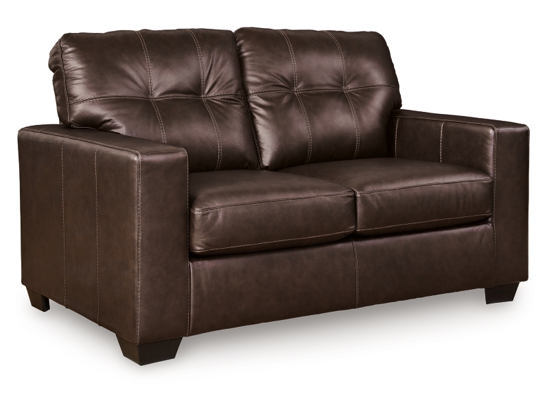Whether your inspiration is contemporary or classic, this loveseat's good looks and affordable luxury are hard to deny. Its clean-lined silhouette and skillfully matched leather and faux leather upholstery offer a transitional sensibility that's right at home in your home. And the ample cushions with tufted details invite you to relax in comfort.