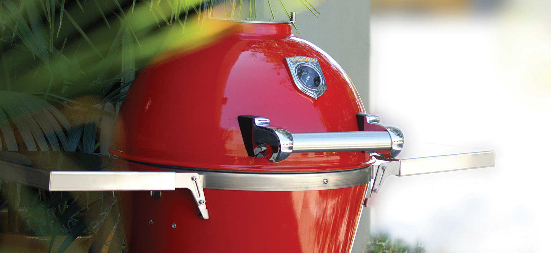 The Caliber Pro Kamado™ is truly remarkable in the variety of cooking styles it offers – grill, smoke, bake and rotisserie within one unit. Weighing less than half of other kamado smokers makes this Pro Kamado a flexible focal area for entertaining. The heat resistant outside shell also provides a safety feature when cooking around guests. When grilling, the Caliber Pro Kamado Charcoal Grill’s patented flue-way system assures better moisture retention in grilled goods. The efficient and unique triple layered insulated oven design of the Pro Kamado keeps heat and moisture in while using 40% less lump charcoal than ceramic grills. The integrated rotisserie option on the Pro Kamado is a patent-pending industry exclusive. The rear heat feature and indirect Blaze Basket are also part of this exclusive system.