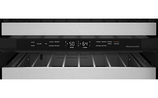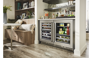 This Undercounter Wine Cellar with Full-Extension Metal-Front Racks holds up to 46 standard Bordeaux-size bottles. Two Temperature-Controlled Zones let you separate reds and whites to store each at the temperature you enjoy, and Motion-Activated LED Lighting turns on as you approach, making it easy to see what’s inside. Fully Flush Installation with Hidden Hinges provides a built-in look within cabinetry.