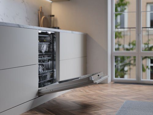 Our fully integrated dishwashers with push-to-open mechanism are ideal for open minimalistic kitchens, where the subtle handleless door contribute to a contemporary feel to your home. You simply give the door’s upper part a light push and the mechanism will then open the door for you. A function for your convenience that also offers the opportunity to integrate your dishwasher in a nice way in your kitchen.