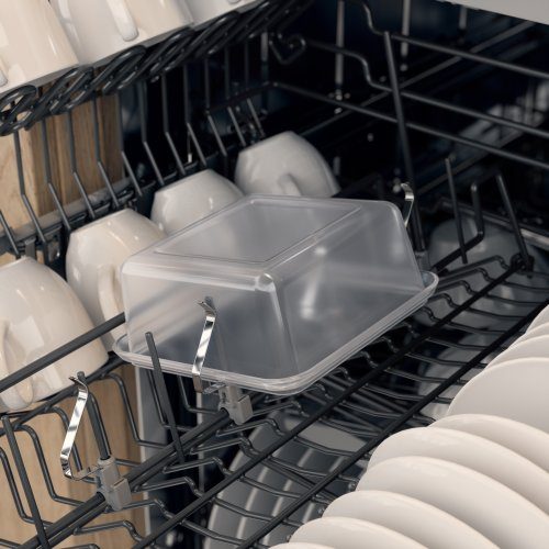 The Plastic program washes and dries your plastic kitchen ware. And, if there’s room left you can of course wash the ordinary porcelain and glass at the same time.