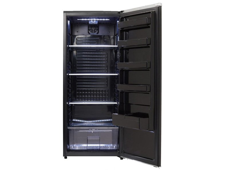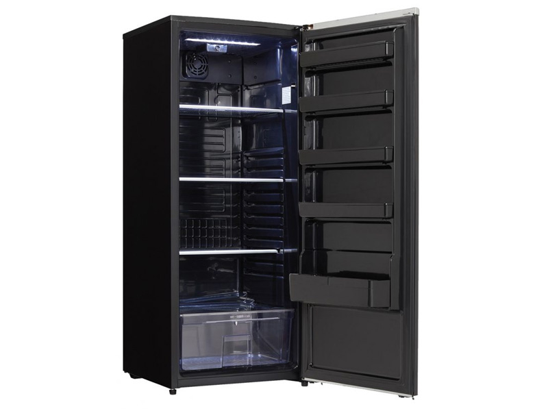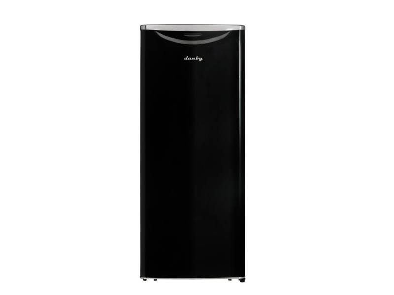 Drawing inspiration from mid-century styling and simplicity, Danby’s patented Contemporary Classic collection of refrigerators reimagine retro for the modern consumer. Featuring Danby’s exclusive retro-inspired curved door design, black metallic door and chassis finish, rubber-grip ergonomic chrome handle and stylized chrome worktop, its exterior features are only outmatched by its signature black interior. Boasting 11 cubic-feet (311 liters) of storage and cooling space, it features three chrome-trimmed tempered glass shelves and five integrated door shelves for maximum storage versatility. There’s more than enough room for larger bottles and the spacious unit helps keep electricity bills in check with its Energy Star rating and state-of-the-art mechanical thermostat. Maintenance and cleaning are as simple as can be with the automatic defrost system. It also includes an efficient and reliable interior white LED light. This model is built for convenience as the reversible door hinge allows you to adjust it for either left or right-handed opening.