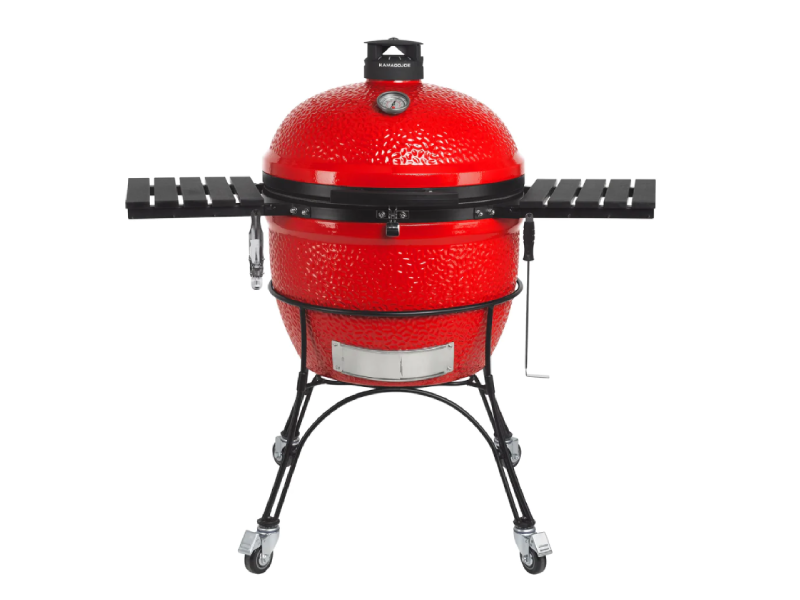 - Premium 24-inch ceramic grill with cart & locking wheels