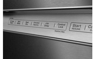 are tucked away on top of the dishwasher door for a clean look to match your kitchen style. An indicator light on the front of the door changes colors to subtly display cycle progress.