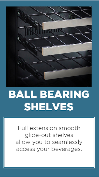 - 5 Full extension ball bearing shelves + 3 pull out tempered glass shelves
