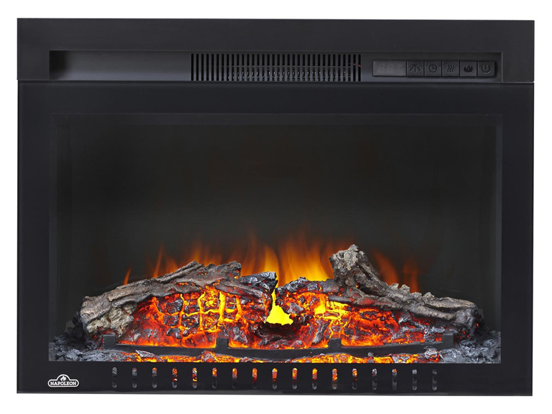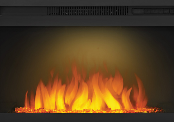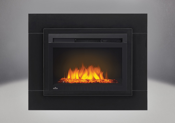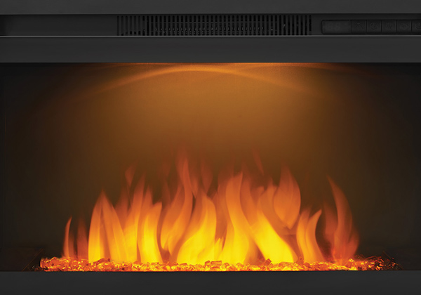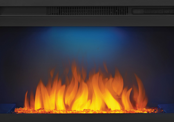 The Napoleon Cinema™ Glass 24 Built-In Electric Fireplace sets a rich and inviting tone for any room in the house. A scintillating topaz glass ember bed dazzles all with the flickering flames, or create a subtle sparkle with the unique NIGHT LIGHT™ setting. This modern electric fireplace is ready to use out of the box; just order it with the Whitney Mantel Package and plug it in. Fully customize this electric fireplace by installing it into a wall. With the push of a button it's easy to adjust flame brightness and heat intensity from the 5,000 BTU’s of power that doesn't require chimneys or venting. Perfect for any room in the home.