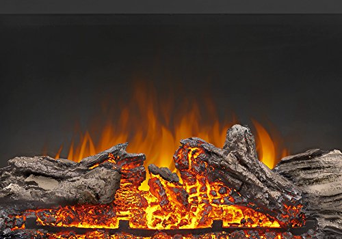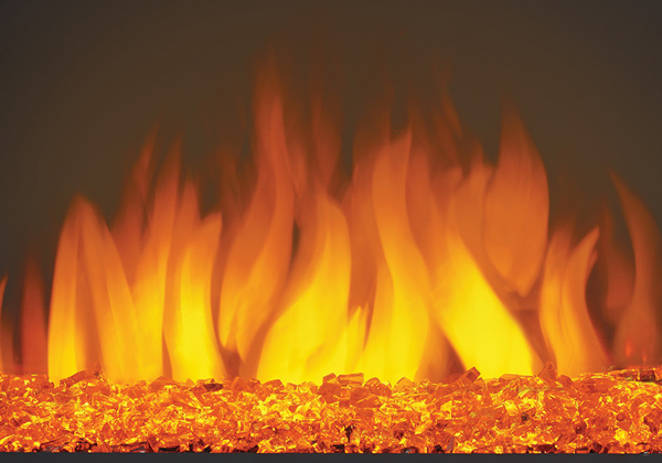 - Exclusive Topaz glass ember bed slowly dies out when turned off for an authentic fireplace experience