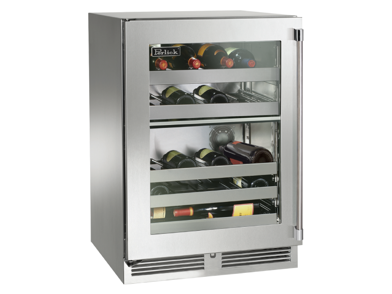 24" Perlick Outdoor Signature Series Left-Hinge Dual-Zone Wine Reserve in Stainless Steel Glass Door - HP24DO43L