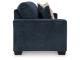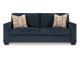 Looking to make a bold statement with color? Liven up your living room with this sofa. Its trend-right navy blue upholstery adds a playful pop of color to your decor. Bold and eclectic accent pillows complete the look. Pairing posh style with everyday comfort, this piece is a welcome addition to contemporary spaces.