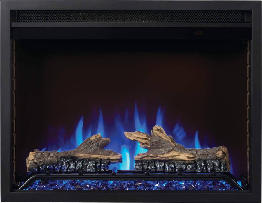 Napoleon’s new Cineview electric insert 26" fireplace comes with both logs and glass media in one box, creating simplicity and flexibility for the homeowner to change up their look based on the season. Featuring orange, blue and multi-colored flame options and 7 different ember bed lights the Cineview can be customized for any setting. Complete with self-trimming flange for a clean built-in finish and optional 3pc and 4pc trims are available when converting an old wood burning fireplace or creating a more substantial surround. The Cineview also comes standard with ECO and BOOST modes, which acts like a 2-stage furnace, giving a little extra boost when it is close to reach the temperature desired, or conserve energy where needed.