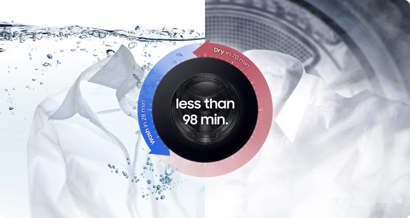 - Super-fast washing and drying in 98 mins