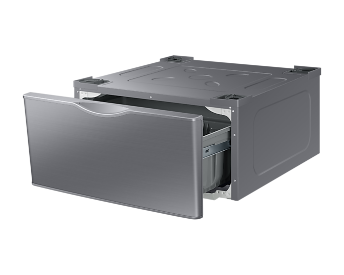 This 27 wide pedestal will allow you to lift your Samsung Front Load washer or dryer by more than a foot for a more convenient height. Tidy up your laundry space with an easily accessible built-in storage drawer.